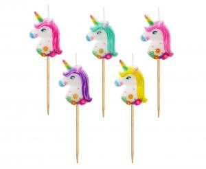 Svíčky dortové 5ks Jednorožec, barevný, na párátku
