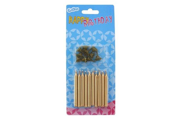 Svíčky dortové zlaté 10ks a 10 držáčků