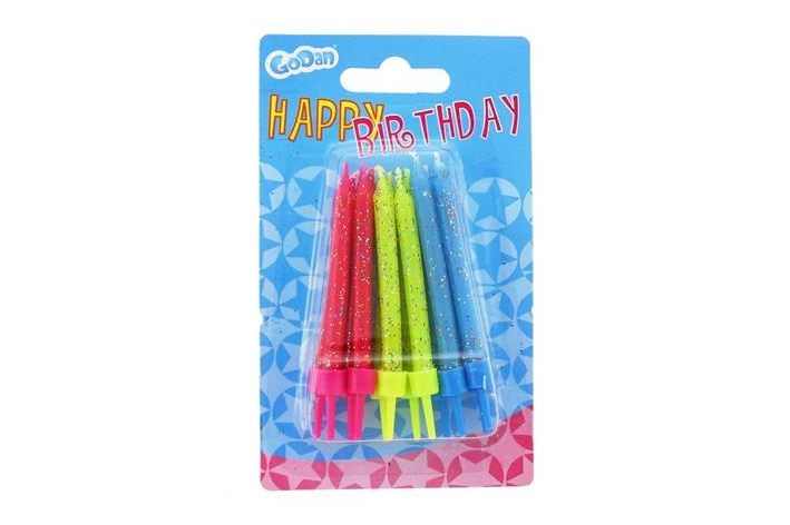Dortové svíčky barevné, vhodné na oslavy narozenin, výročí i jiné party. Balení: 12 ks Velikost: 6 cm