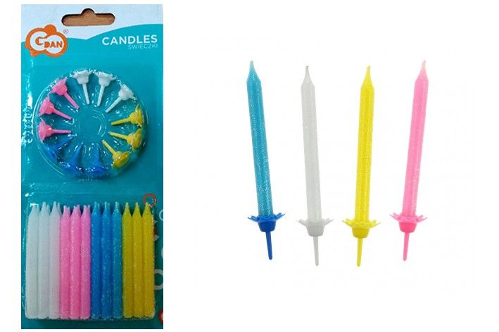 Sada obsahuje 24ks svíček a 12 podstavců.