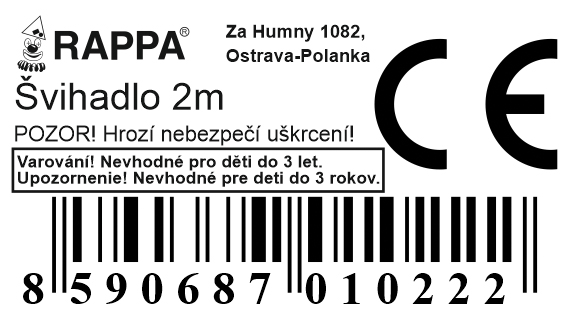 Švihadlo dlouhé 2 metry s plastovými rukojeťmi.