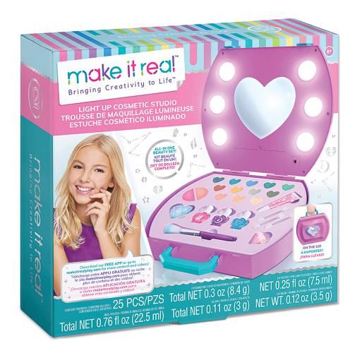 Obsahuje kosmetické pouzdro se světlem a zrcadlem, 12 různě barevných očních stínů, 3 štětce na oční stíny, 2 tvářenky, štětec na tvářenku, 3 různě barevné laky na nehty, lesk na rty, balzám na rty, pilník na nehty a instrukce. Vhodné pro děti od 8 let.