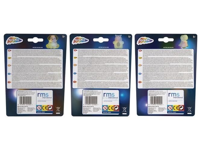 Svítící LED zvířátka – 3 druhy pejsek, hrošík a dino. Na baterie: 1x LR44 (je součástí balení)