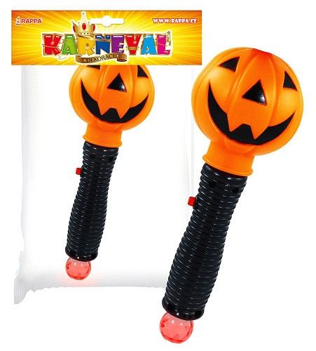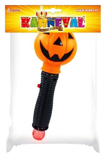 Halloweenské svítídlo na tu pravou Halloween párty! Plastová dýně s rukojetí vyžaduje 3 ks baterí LR44. Stačí jen zapnout tlačítko na rukojeti a ozve se strašidelný zvuk spolu se světelným efektem.