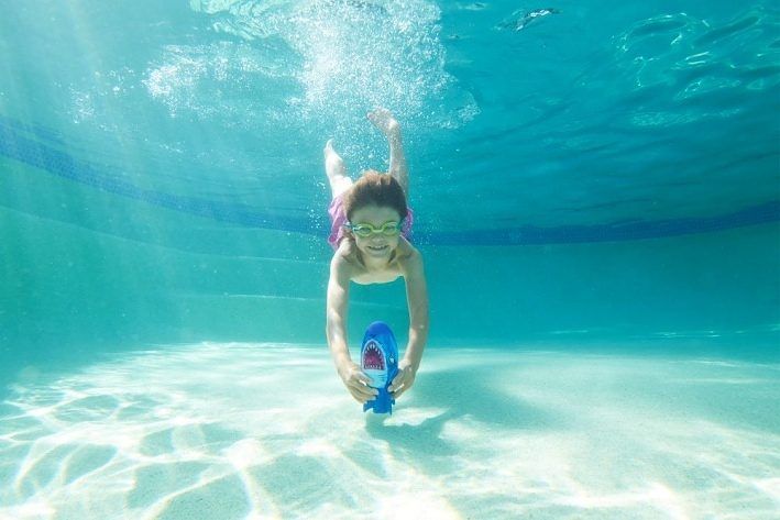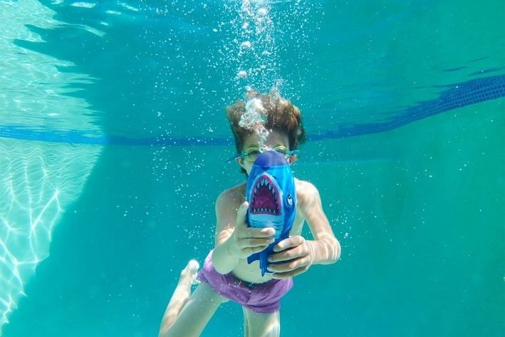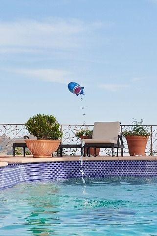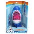 Raketa žralok vystřelí z bazénu až 180 cm nad hladinu. Podrž žraloka pod vodou, namiř a vypusť ji. Nebo ji můžeš ponořit do bazénu, připevni ji ke dnu, počkej 10 sekund a sama vystřelí a vyletí přímo do vzduchu. Je vyrobená z měkké pěny a má lehkou konstr