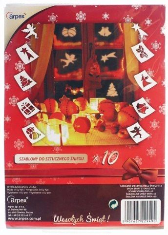 Papírové šablony na umělý sníh. V balení najdete 10 různých vzorů. Velikost šablony je 14 x 20 cm.