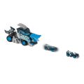 T-Racers S autíčko Launcher Ice je zábavná hračka, která kombinuje funkci kamionu s možností vystřelení menšího závodního vozidla. Celý set je laděn do chladných modrých a šedých odstínů, doplněných o motivy ledových krystalů a blesků, které podtrhují ledové téma. Kamion má robustní design s výraznými detaily, jako jsou modrá kola, šedý nákladový prostor a výrazná přední maska s logem „TR“. Na bocích jsou viditelné grafické prvky připomínající ledové zlomy a blesky, což dodává autíčku dynamický a agresivní vzhled. Hračka je vybavena speciálním mechanismem launcheru, který umožňuje naložit menší závodní vozidlo do zadní části kamionu. Po stisknutí šedé páky na střeše kamionu se menší vozítko s názvem Ice Breaker vystřelí dopředu s velkou rychlostí. Tento způsob hry podporuje interaktivitu a zábavu, protože děti mohou simulovat závody a soutěže. Menší autíčko Ice Breaker je laděno do stejných barev jako kamion, s modrými koly a stříbrnými detaily motoru, což vizuálně propojuje oba díly soupravy. Set je vhodný pro děti, které mají rády akční figurky a závodní hračky, a patří do kategorie akčních figurek s chlapeckým zaměřením. Kamion slouží nejen jako dopravní prostředek, ale také jako launcher pro menší vozidlo, což přidává další vrstvu herní strategie. Možnost propojení s dalšími vozidly z řady T-Racers umožňuje vytvářet vlastní závodní týmy a soutěžit s kamarády, čímž se prodlužuje herní zážitek a rozvíjí kreativita. Celkově jde o kvalitně zpracovanou a atraktivní hračku, která kombinuje vizuálně poutavý design s funkčním prvkem launcheru. Vhodná je pro děti, které rády kombinují rychlost, soutěžení a sbírání figurek v rámci série T-Racers Mix'n'Race.