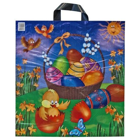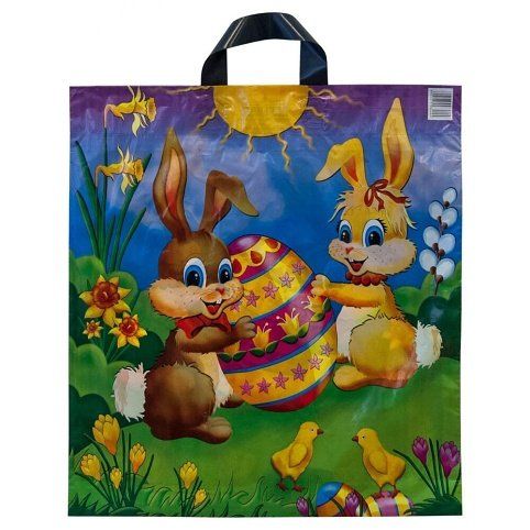 Velikonoční taška PE s motivem zajíců a kraslice nebo kraslic a kuřete.