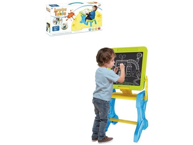 Tabule na malování se stojanem. Kreslící tabule je skvělou hračkou při první nauce psaní, kreslení a rozpoznávání písmenek. Jedna strana tabule slouží pro psaní křídou, druhá strana slouží pro psaní a kreslení fixem. Ve spodní části tabule je umístěn praktický kontejner na příslušenství. Tabule je vyrobena z kvalitního plastu bez ostrých hran. Rozměr: 40 x 37 x 75 cmMateriál hračky je plast. Doporučený věk: 3 +