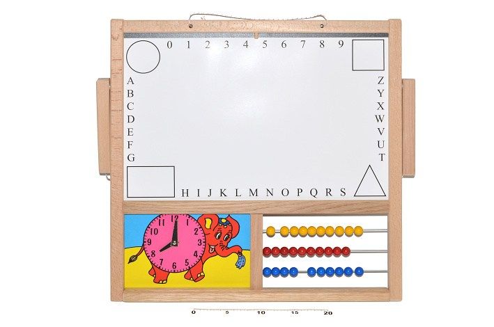 S touto tabulkou bude učení hračka. Malý školák si procvičí počítání, barvičky, tvary, písmena, číslice i hodiny. Tabuli můžete dle potřeby zavěsit na stěnu nebo postavit na stůl. Stírací tabule vhodná na psaní či kreslení.