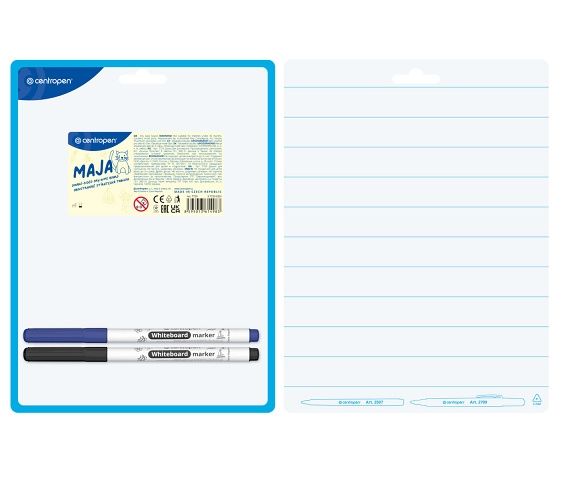 Oboustranně stíratelná tabulka Mája s potiskem linek pro první třídu k procvičování prvního psaní, ale i kreslení- specifický povrch s předtištěným vzorem je skvělou pomůckou pro procvičování správného psaní- na přední straně tabulky se nachází linky, které slouží k nacvičování písmen- na zadní stranu tabulky je možné kreslit- součástí sady jsou dva stíratelné popisovače s ergonomickým úchopem- popisovače jsou naplněny zdravotně nezávadným inkoustem- skladujte ve vodorovné poloze- popisovače obsahují ventilační uzávěr- po použití uzavřete- rozměr: 17,5 x 23,5cm