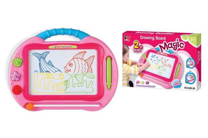 Magnetická kreslící tabulka se 3 razítky v růžové barvě.
