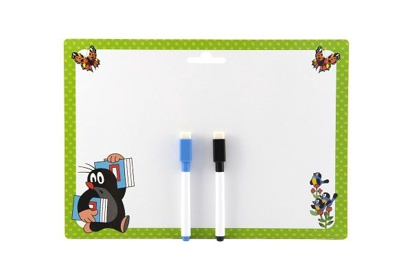 Tabulka mazací Krtek oboustranná 30x21cm + popisovače 2ks ve fólii