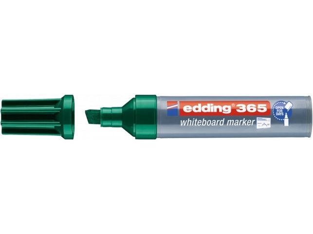Popisovač EDDING 365 pro široké psaní a značení na whiteboard nebo flipchart. Je vhodný pro psaní na hladké skleněné, melaminové nebo emailové povrchy a papír. Extra široký zkoseným hrot – šíře stopy 2-7 mm. Lze odstranit suchou cestou prakticky ze všech neporézních povrchů. Inkoust je rychleschnoucí, odolný vůči světlu, bez přidaného butylacetátu, s nízkým zápachem. Technologie „cap-off“ - popisovač můžete nechat bez víčka i několik dní, aniž by vyschl (testováno podle normy ISO 554). Fix je možné znovu naplnit pomocí EDDING BT 30. K dispozici jsou i náhradní hroty (EDDING 365). Popisovač skladujte ideálně ve vodorovné poloze.