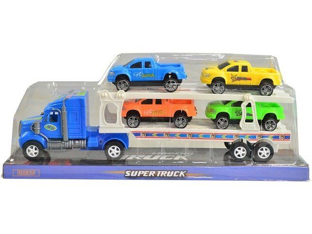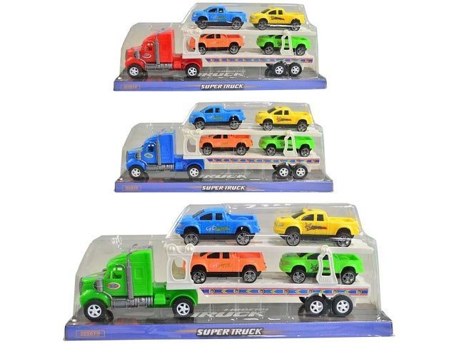 Tahač s auty, na setrvačník, 31,4 x 13,2 x 8,5 cm. Užij si spoustu zábavy s tahačem, který sebou veze auta. Můžeš je vykládat, nakládat podle libosti. Hračka je určena pro děti 3+. Rozměr hračky je 31,4 x 13,2 x 8,5 cm. Materiál hračky je plast. Balení hračky je window box. Produkt je určený pro kluky.