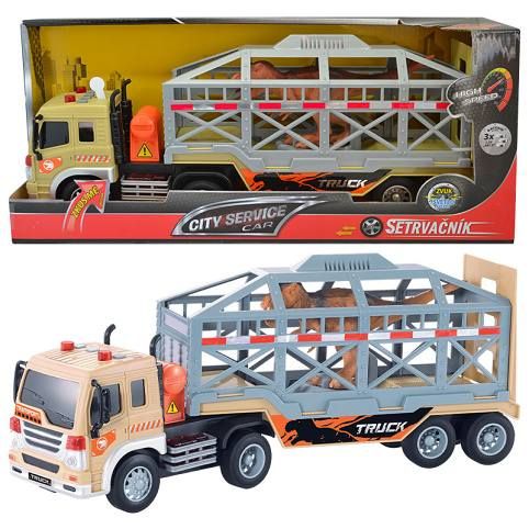 Tahač s návěsem s klecí a dinosaurem 1:16