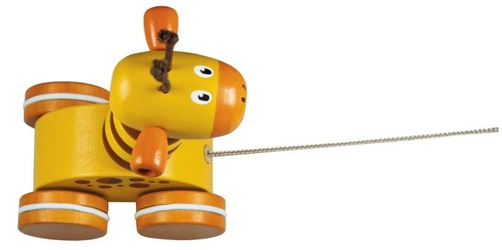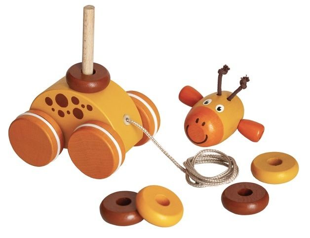 Dřevěná hračka 2v1. tahací Źirafa i pyramida. Pomáhá děťátku s prvními krůčky. Rozvíjí koordinaci pohybů a učí jemné motorice ruky.