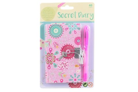 Krásný zápisník pro holčičky. Balení obsahuje speciální pero, díky němuž můžete napsat cokoliv, ale vše bude vidět pouze pod speciálním světlem na konci pera. Obsahuje zámek a 2 klíčky. Napájení na 3 AG13 baterie (jsou součástí balení). Rozměry diáře cca 8x13x0,5 cm. Rozměry balení cca 13x20x1 cm. Výrobek není hračka.