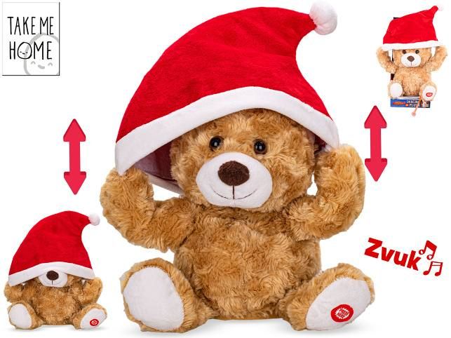 Take Me Home medvěd plyšový 29-36cm nasazující si santovskou čepici na baterie, zvuk 12m+