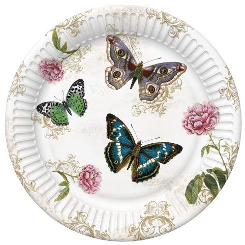 Papírové talíře Motýli, průměr 18cm, balení obsahuje 8ks. Papírové talíře jsou ideálním řešením pro snadné stolování bez nepořádku.