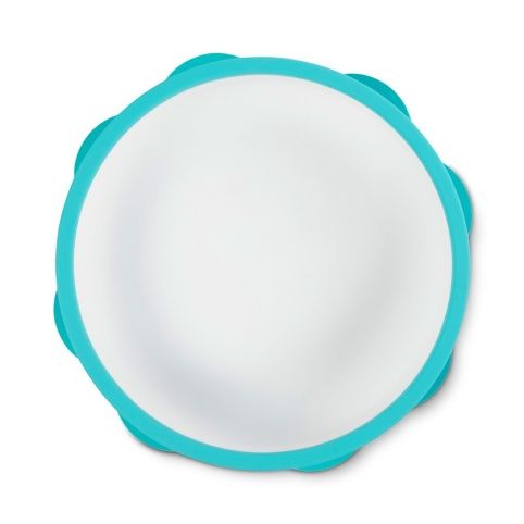 Talíř silikonový s protiskluzovou podložkou tyrkysový 6m+ – vyrobeno z prémiového silikonu. Neobsahuje změkčovadla. Ergonomický tvar zůstává i po dlouhodobém používání. Přísavka pomáhá udržet talíř a tím zabraňuje rozlití.