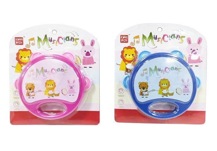 Tamburína 15,5 cm. 2 varianty - modrá, růžová. Přesné rozměry 15,5x3x13 cm.