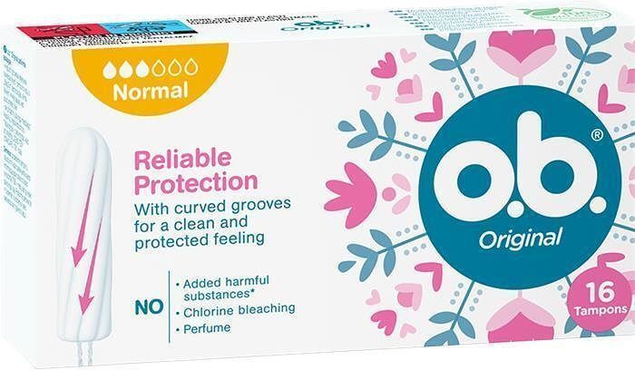 Použití tamponu o.b.® Original Normal se doporučuje při středně silném až silném krvácení. Točené žebrování poskytuje spolehlivou ochranu a technologie StayDry udrží vytahovací nit také suchou.