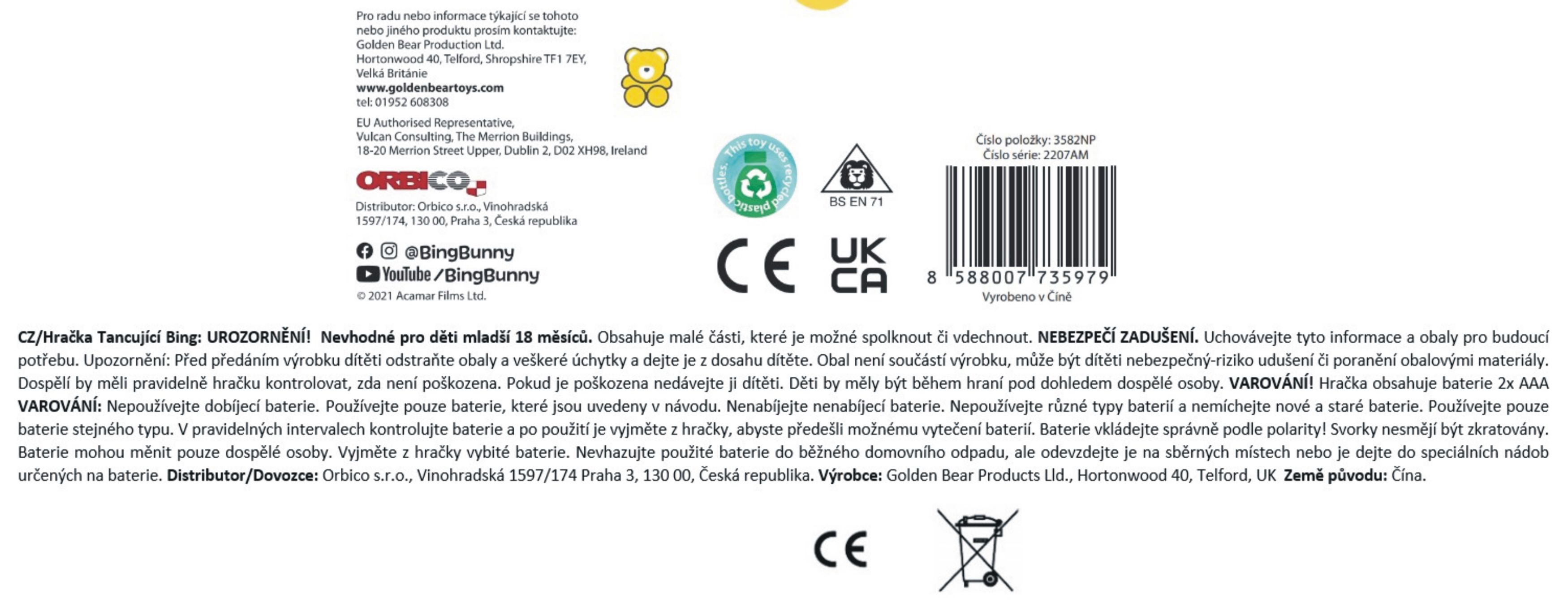 Česky mluvící plyšový BING populární pohádky králíček Bing. Je to skvělý společník, umí tančit i mluvit. Když stiskneš knoflík/bříško uslyšíš jak Bing mluví/ hraje a tančí. Je vyrobený z měkoučkého mazlivého vysoce kvalitního materiálu. Součástí balení jsou 3AA baterie, které se dají vyměnit.
