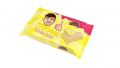 Složení: pšeničná mouka, rostlinné oleje (palmový, kokosový), cukr, glukózový sirup (kukuričný), kukuričný škrob, sušené odstředěné mléko, sůl, kypřící látky (kyselina sodná), pyrofosfát, hydrogenuhlicitan sodný, hydrogenuhlicitan amonný, emulgátor (sójový lecitin), aroma (vanilka, citron), barvivo (lutein), modř FCF