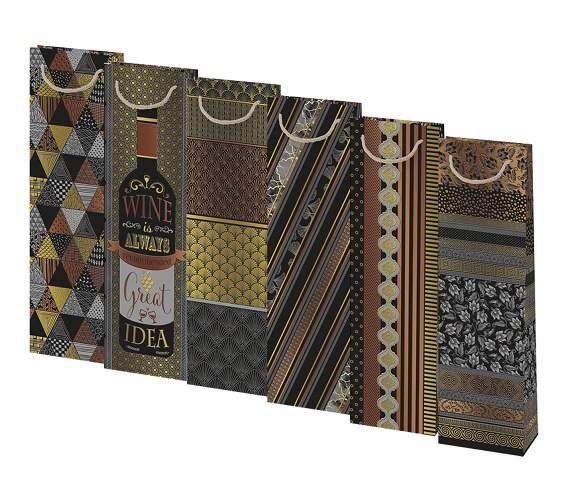 Papírová dárková taška s lesklou fólií- ucha z bavlněné šňůrky- rozměr: 12 x 40 x 9cm- mix motivů