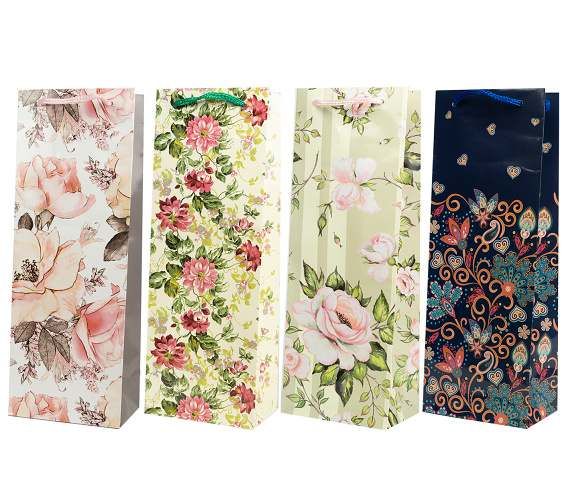 Dárková taška na lahev v provedení UV lak- ucha z bavlněné šňůrky- mix motivů- rozměr 13x36x8,5 cm