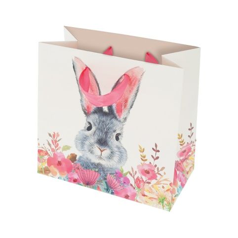 Taška dárková 16,5 x 16,5 x 9 cm, Zajíc s květy