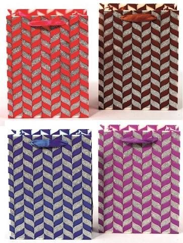 Papírová dárková taška s textilními uchy. Balení po 12 ks. Mix 4 barev.