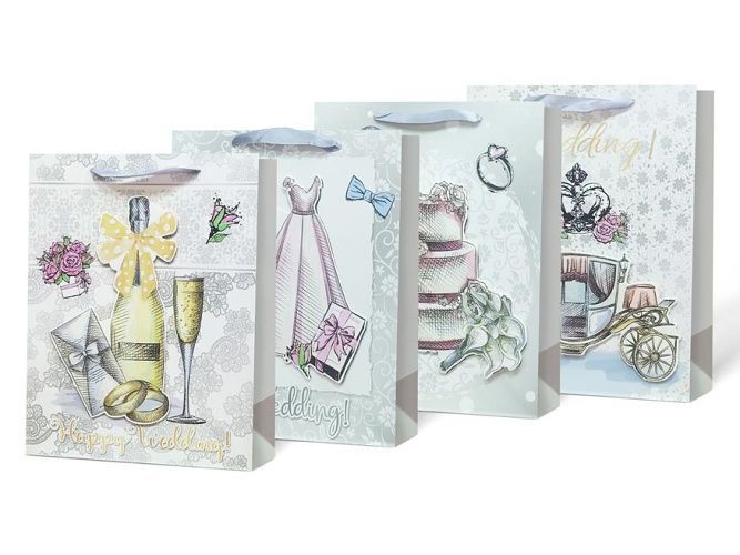 Dárková papírová taška se svatebním motivem. Dárkové tašky jsou skvělé na dárky, které lze jen těžko zabalit do balícího papíru. Velmi praktické jsou také pro ty, co dárky neradi balí nebo to moc neumí a nebyli by spokojeni se svým výsledkem. Uvedená cena je za jeden kus.