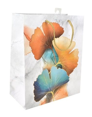 Taška dárková papírová, barevné listy, 26 x 31,5 x 14 cm