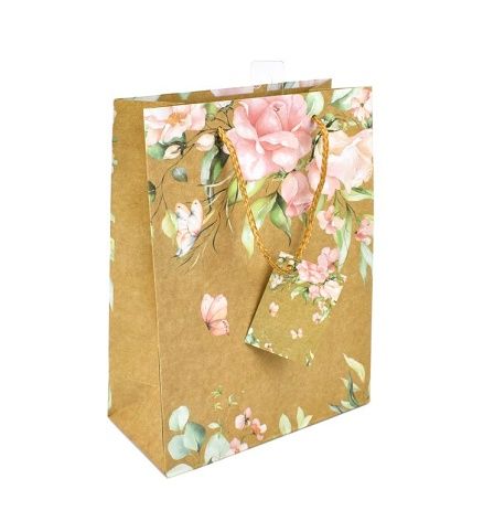 Taška dárková papírová kraft, růže, 19 x 25 x 9 cm
