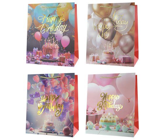Taška dárková se zlatým potiskem 32 x 26 x 12cm BALÓNKY mix