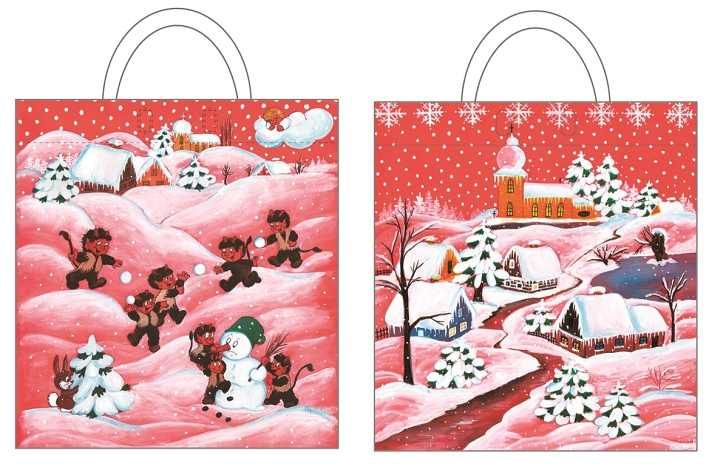 Taška igelitová červená 48 x 44 cm- 1. Čertíci a sněhulák