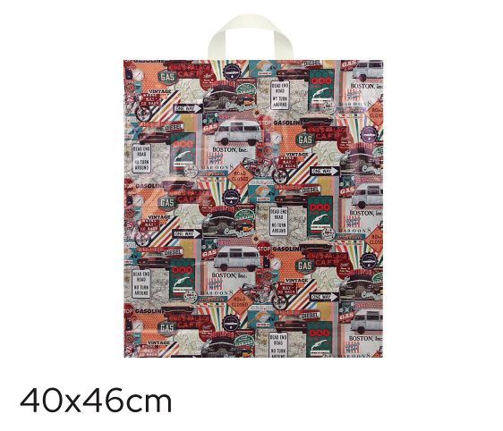 Neprůhledná igelitová taška - z bílého polyetylenu s potiskem- s uchy- složené dno - rozměr: 400 x 460mm
