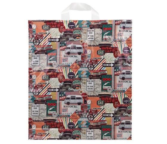 Neprůhledná igelitová taška - z bílého polyetylenu s potiskem- s uchy- složené dno - rozměr: 400 x 460mm