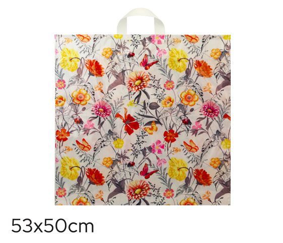 Neprůhledná igelitová taška - z bílého polyetylenu s potiskem- s uchy- složené dno - rozměr: 500 x 510mm