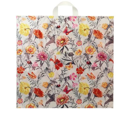 Neprůhledná igelitová taška - z bílého polyetylenu s potiskem- s uchy- složené dno - rozměr: 500 x 510mm