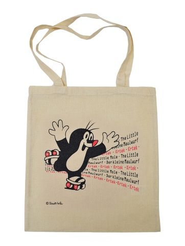 Plátěná taška v přírodní barvě s potiskem Krtečka. Dlouhá ucha umožňují nosit plátěnku přes rameno a usnadňují použití i malým dětem.