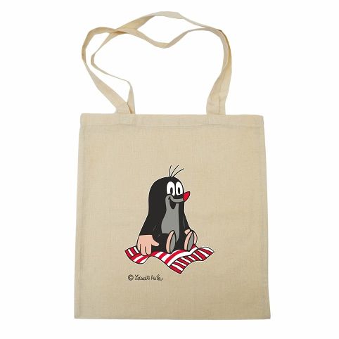 Plátěná taška v přírodní barvě s potiskem Krtečka. Dlouhá ucha umožňují nosit plátěnku přes rameno a usnadňují použití i malým dětem.