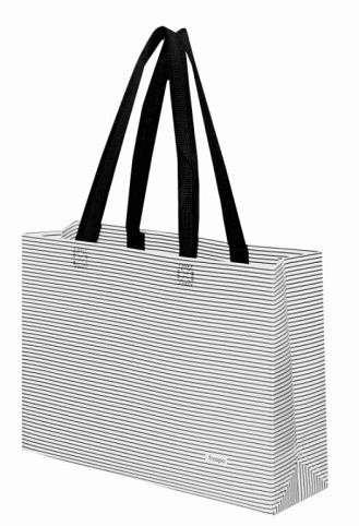 Ekologická módní taška z tkaného recyklovaného materiálu o rozměrech 35x10x25cm.