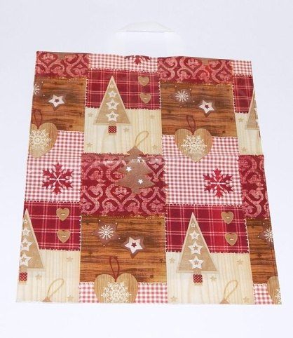 Igelitová taška s uchy je vyrobena z bílého polyetylenu, určena pro přímý styk s potravinami. Taška má složené dno. Vánoční motiv je potištěn z obou stran.Rozměry: 39 x 46cm