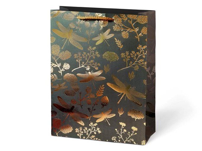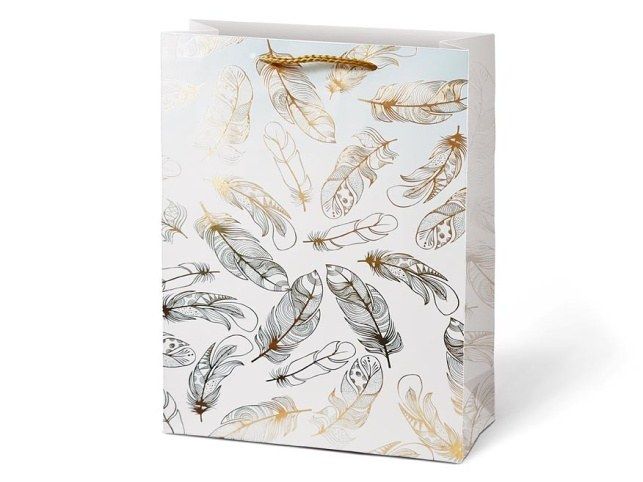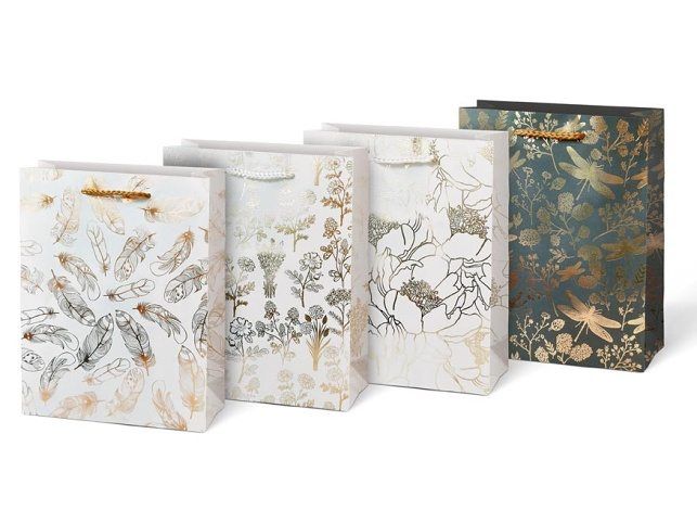 Dárková, papírová taška L LUX s mixem motivů. Taška je opatřena pevným uchem pro snadné nošení a kartičkou kam můžete napsat jméno nebo krátké věnování. Dárkové tašky jsou skvělé na dárky, které lze jen těžko zabalit do balícího papíru. Velmi praktické jsou také pro ty, co dárky neradi balí nebo to moc neumí a nebyli by spokojeni se svým výsledkem. Batva: bílá, černá Motiv: peříčka, rostliny, květiny, vážky Rozměr: 225 x 335 x 100 mm Uvedená cena je za 1 ks.
