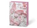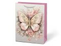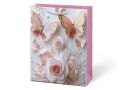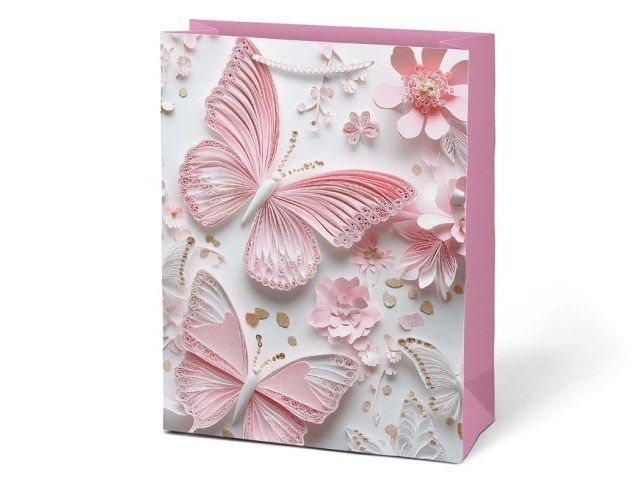 Každý dárek si zaslouží balení, které podtrhne jeho výjimečnost. Dárková taška M LUX přináší něžný motiv motýlů a květů v jemných odstínech. Působí elegantně, romanticky a díky promyšleným detailům se hodí pro nejrůznější příležitosti – od narozenin po svatební dary. Balení s ní je snadné a přitom působivé. Pletená ucha ladící s barvou tašky doplňují její čistý design. Díky svému vzhledu se taška stává součástí dárku – decentní, ale přesto nepřehlédnutelnou. Motiv: květy, motýli Rozměry: 260 x 320 x 120 mm Uvedená cena je za 1 ks.