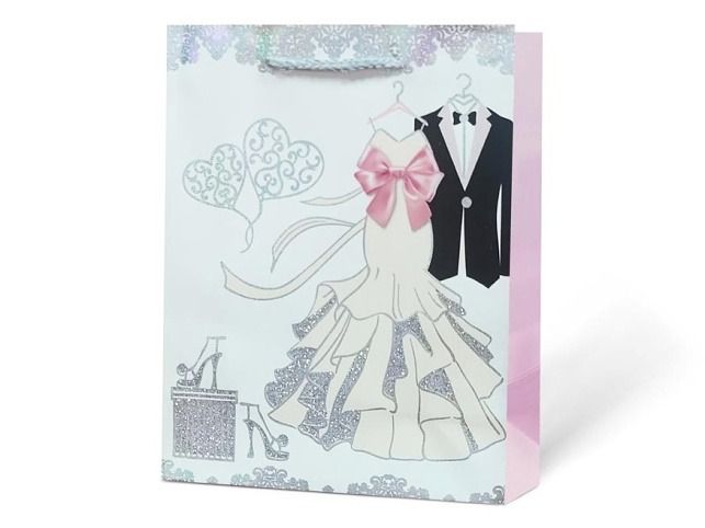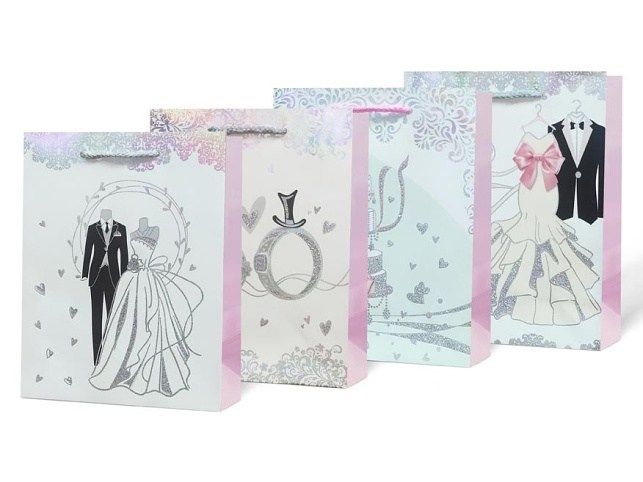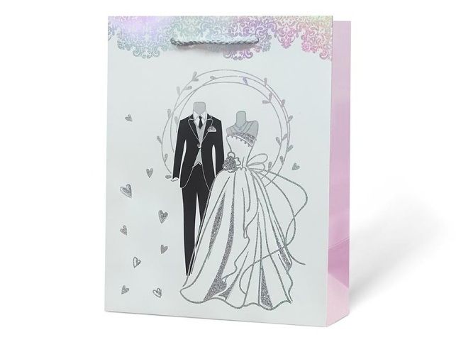 Dárková papírová taška se svatebním motivem. Dárkové tašky jsou skvělé na dárky, které lze jen těžko zabalit do balícího papíru. Velmi praktické jsou také pro ty, co dárky neradi balí nebo to moc neumí a nebyli by spokojeni se svým výsledkem. Uvedená cena je za jeden kus.