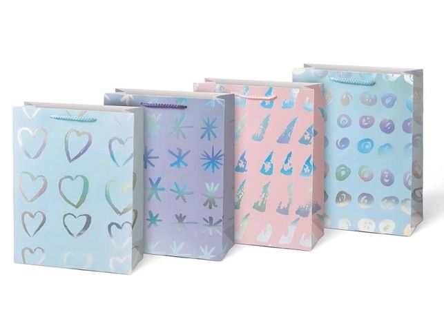Barevná, dárková, papírová taška M LUX v mixu motivů a barev. Taška je opatřena pevným uchem pro snadné nošení a kartičkou kam můžete napsat jméno nebo krátké věnování. Dárkové tašky jsou skvělé na dárky, které lze jen těžko zabalit do balícího papíru. Velmi praktické jsou také pro ty, co dárky neradi balí nebo to moc neumí a nebyli by spokojeni se svým výsledkem. Barva: 2 x světle modrá, fialová, růžová Motiv: srdce, hvězdy, trojúhelníky, puntíky Rozměr: 180 x 230 x 90 mm Uvedená cena je za 1 ks.